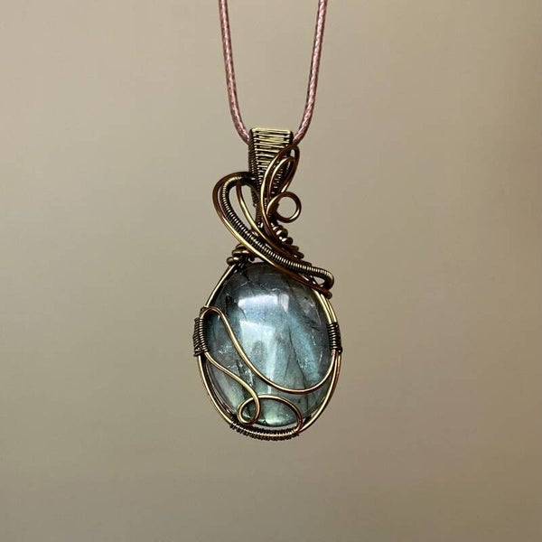 Deze wire wrapped Labradoriet is wire wrapped in een prachtig sierlijk ontwerp.