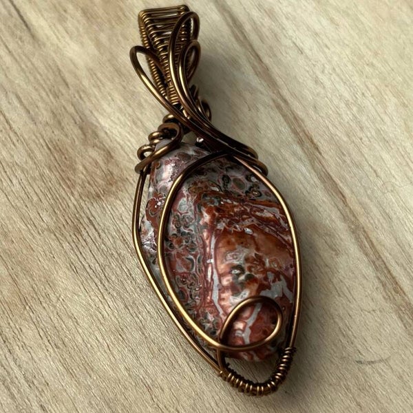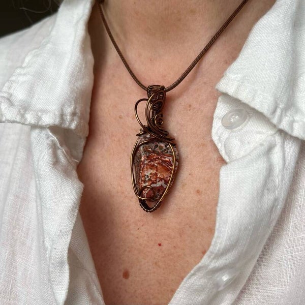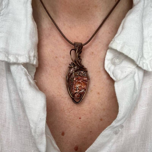 Een Leopard Jaspis wire wrapped in klassiek model.