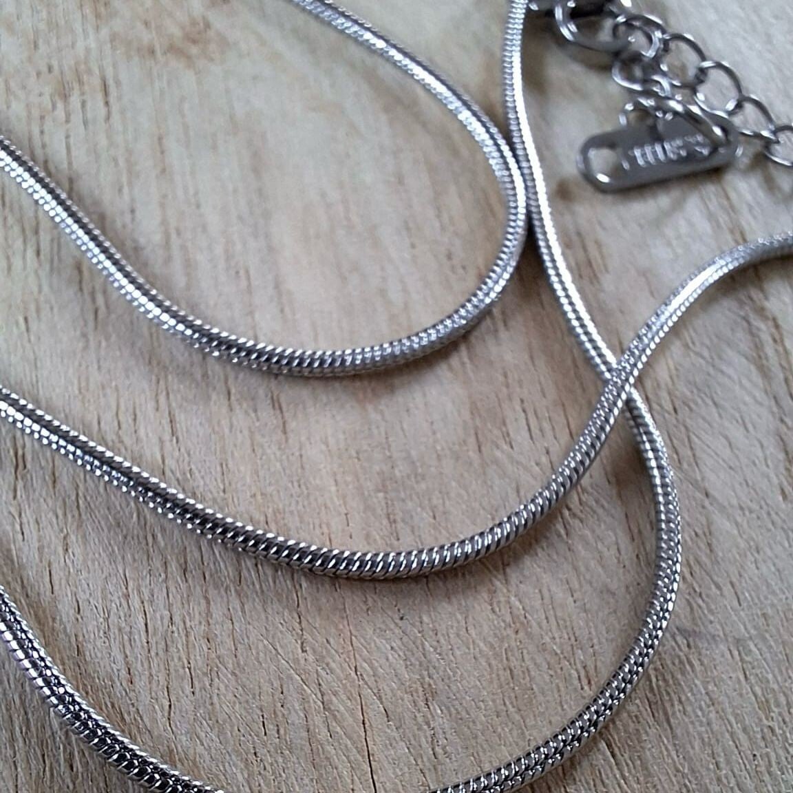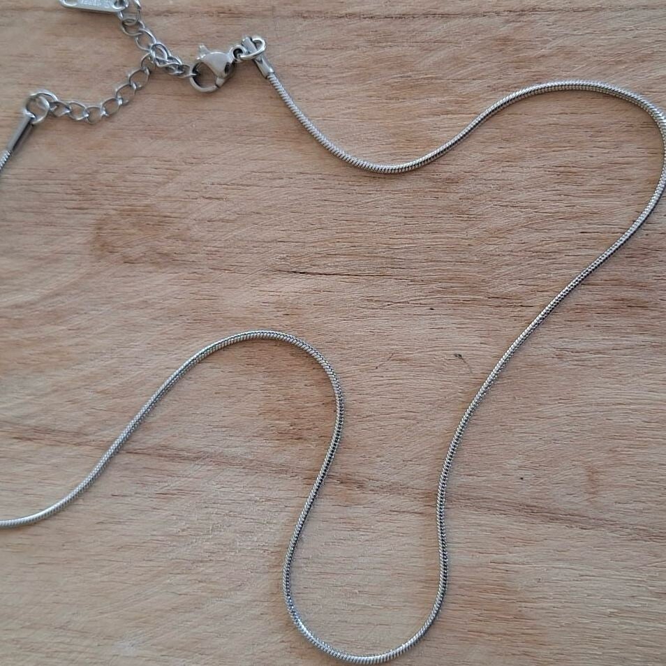Mooie subtiele halsketting (snake) met karabijnsluiting van zilver stainless steel.