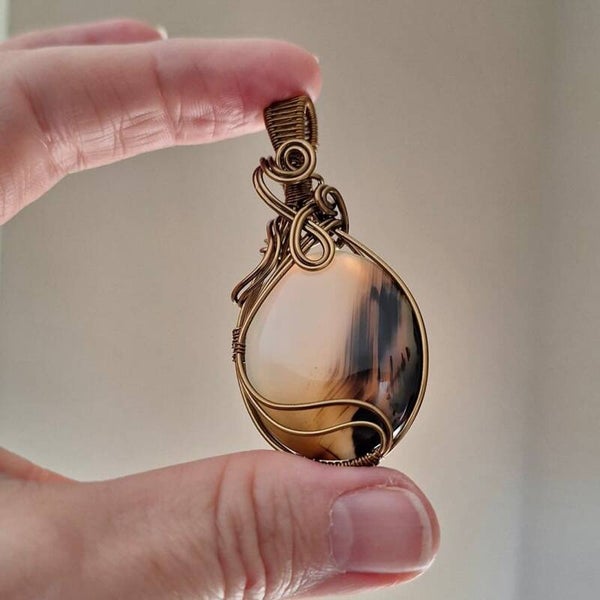 De Dendriet is gewikkeld in hoge kwaliteit ijzerdraad van BeadSmith (Wire Elements craft wire lijn). Het draad heeft een speciaal aanslag bestendig laagje (non tarnish); dit zorgt ervoor dat het draad minder snel verkleurd. Het sieraad bewaren in een sieradenbox helpt daarbij ook (zie onze webshop).